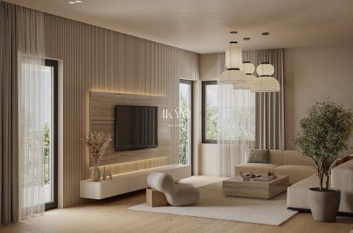 It features two spacious bedrooms, an open-plan living–dining area, a separate kitchen, and two bathrooms, with a thoughtfully designed layout that ensures comfortable everyday living. The bright interior spaces connect harmoniously with balconies totaling 38 sq.m., while the exclusive-use rooftop terrace of 100 sq.m. is one of the property’s strongest features. It offers the possibility of creating a roof garden, relaxation area, or outdoor seating space, adding substantial value and rarity for the area’s standards.