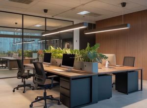 The office extends over two levels (290 sq.m. ground floor and 265 sq.m. mezzanine). In its current layout, it accommodates 29 workstations.
