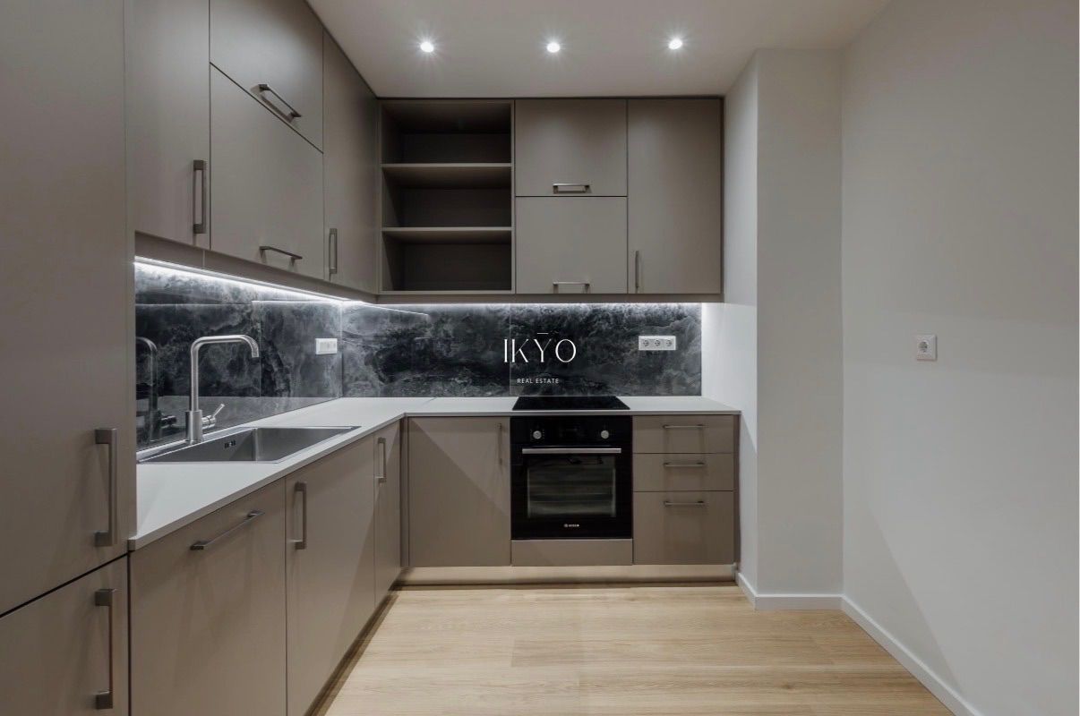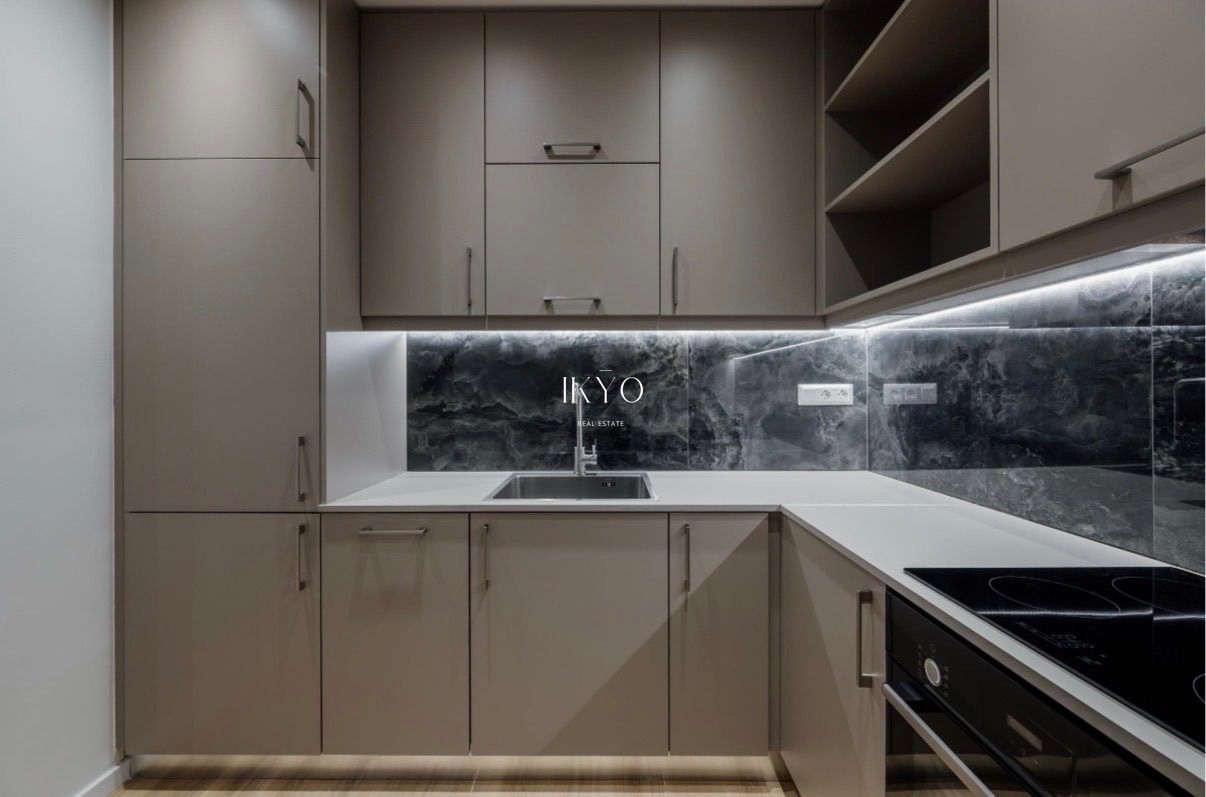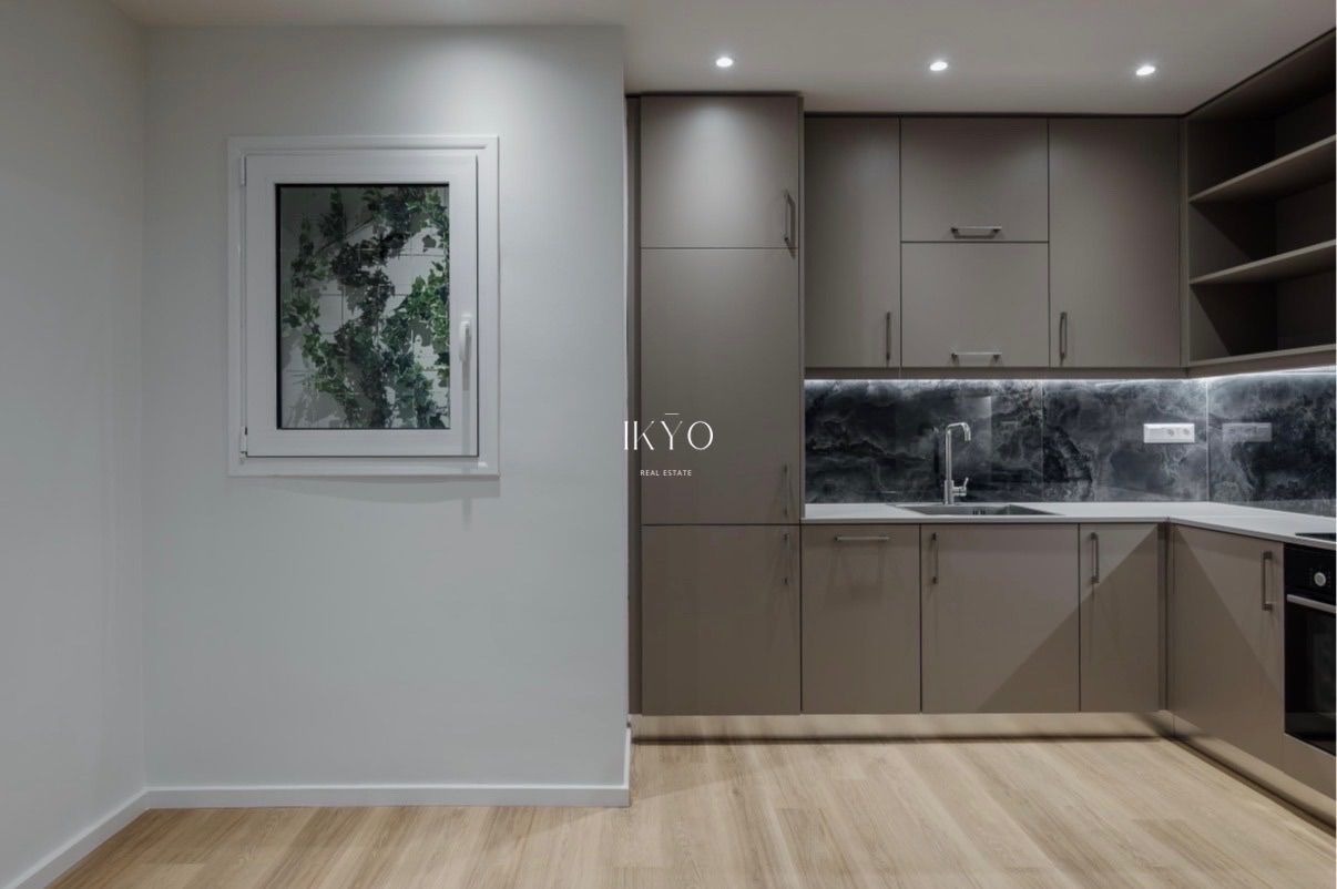 The property was fully renovated in 2025 and features a modern layout with a bright open-plan living room and kitchen that opens onto a large 13.4 sq.m. veranda. It includes one bedroom (with the potential of a second one), one bathroom and one WC.