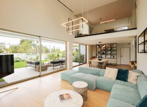 The ground floor (123 sq.m.) consists of a spacious open-plan living and dining area with large openings that lead directly to the private garden, a fully equipped kitchen with built-in Miele appliances...