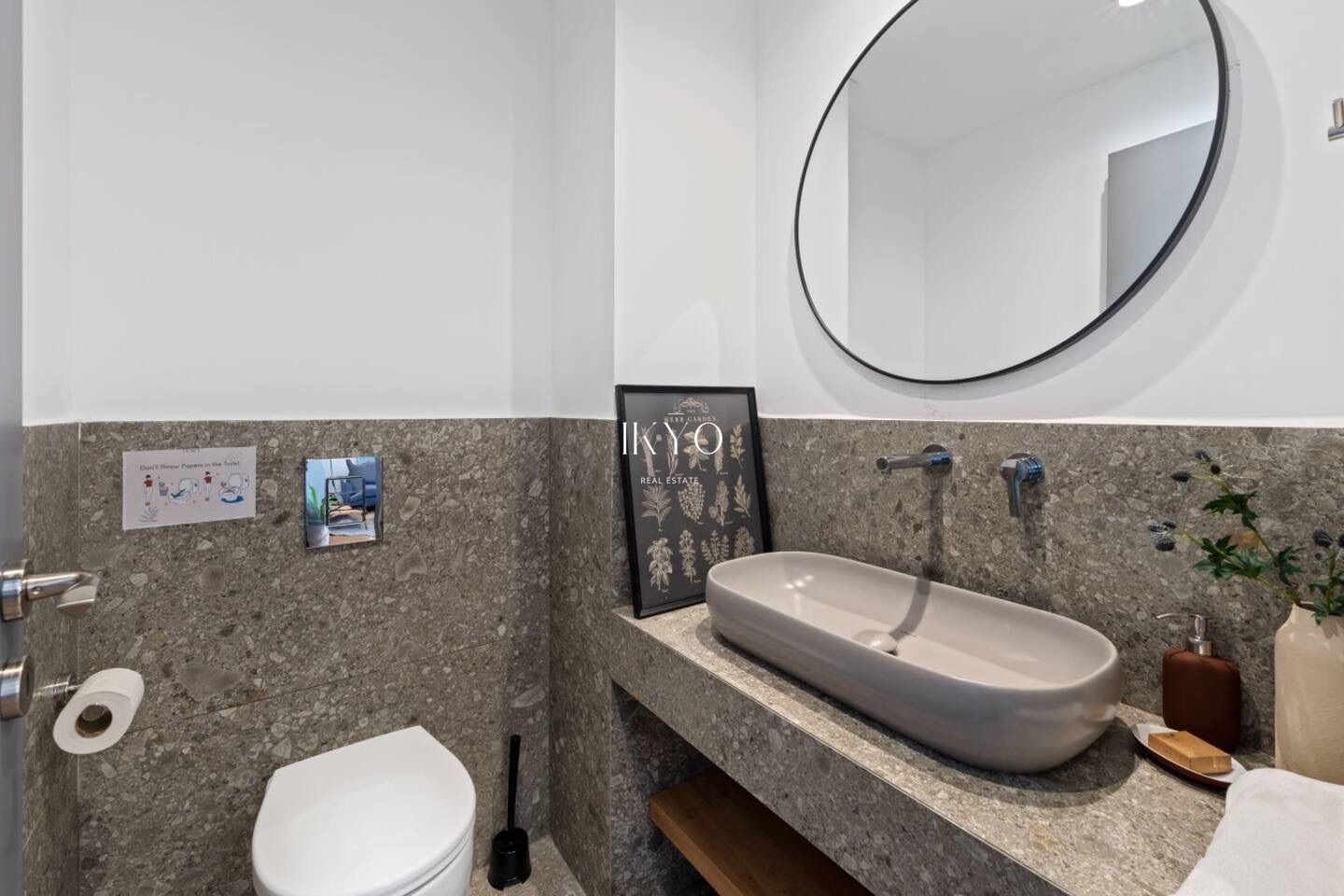 The two bedrooms have been designed with a focus on privacy and tranquility, featuring full-height built-in wardrobes, while the master bedroom stands out for its minimal character, refined lighting, and soft color palette. The bathrooms follow a modern aesthetic with stone finishes, vessel sinks, and high-quality matte details.
